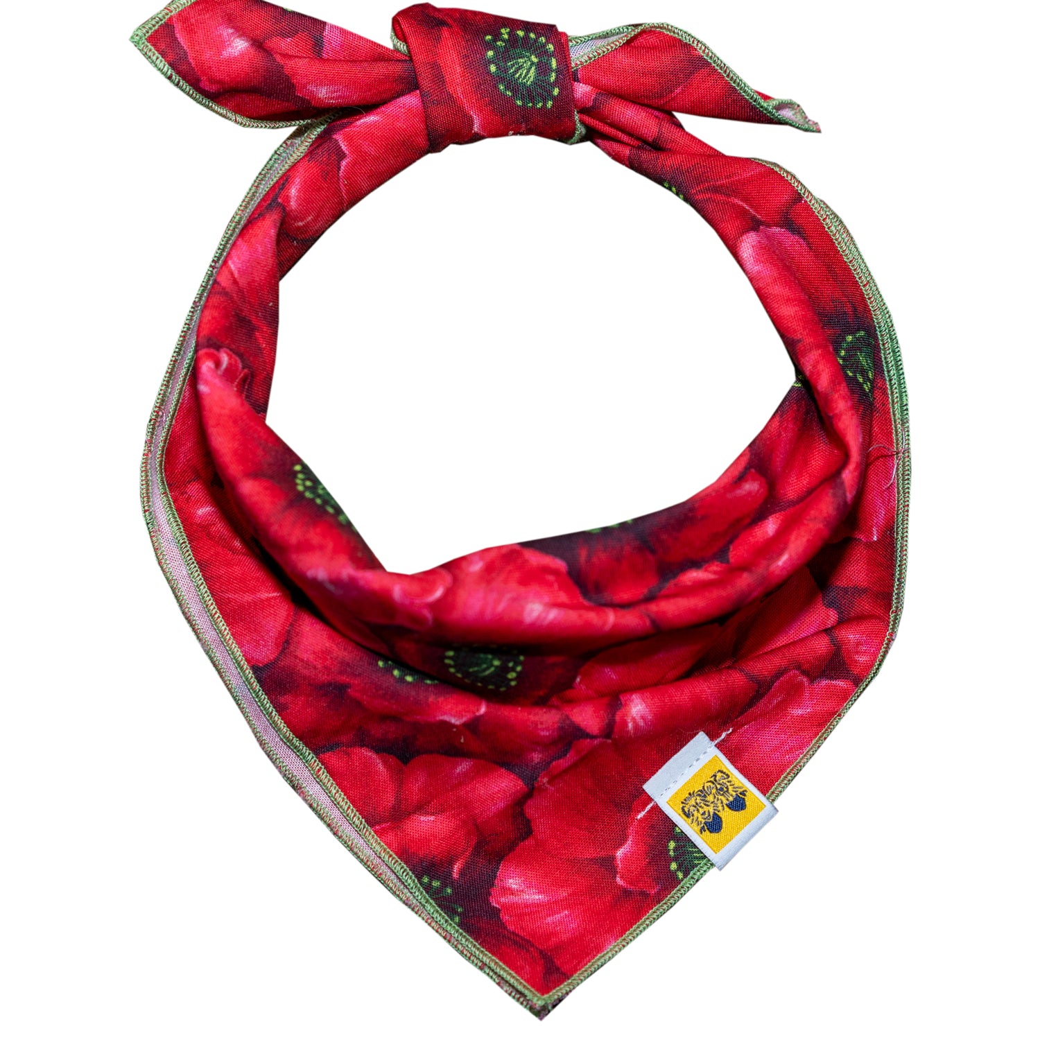 Poppies, Poppies, and more poppies. This red fabric has a bundle of magnified poppies brimming throughout it. A bright green edging is the perfect contrast for this wild floral print.