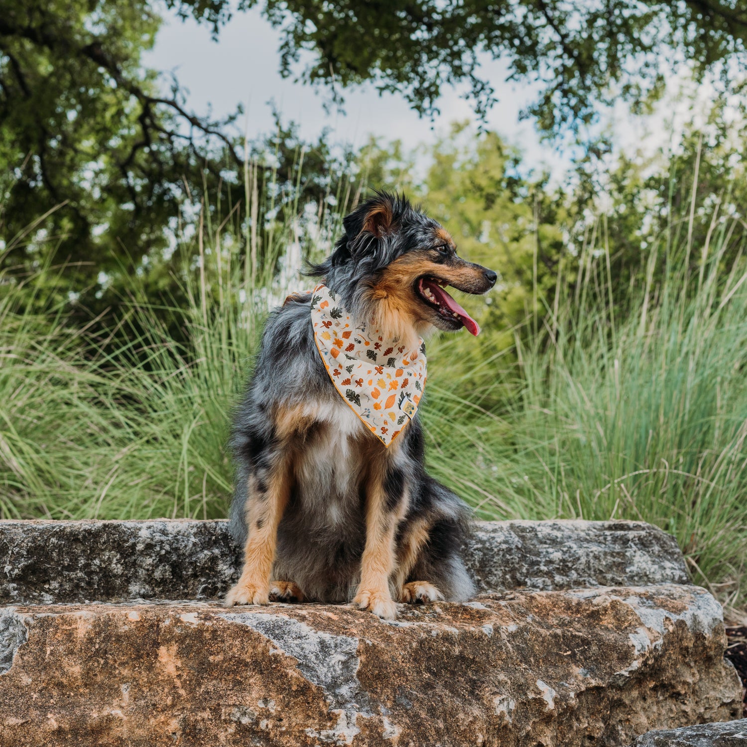 Can you smell it? That change in the wind, it must mean autumn is just around the corner. You'll find no better way to display your love of all things autumnal than this lovely falling leaves print. Quintessentially autumnal, the color foliage is perfect for a dog who loves a hike, a romp in a pile of leaves, or even just a cozy snuggle on the couch.