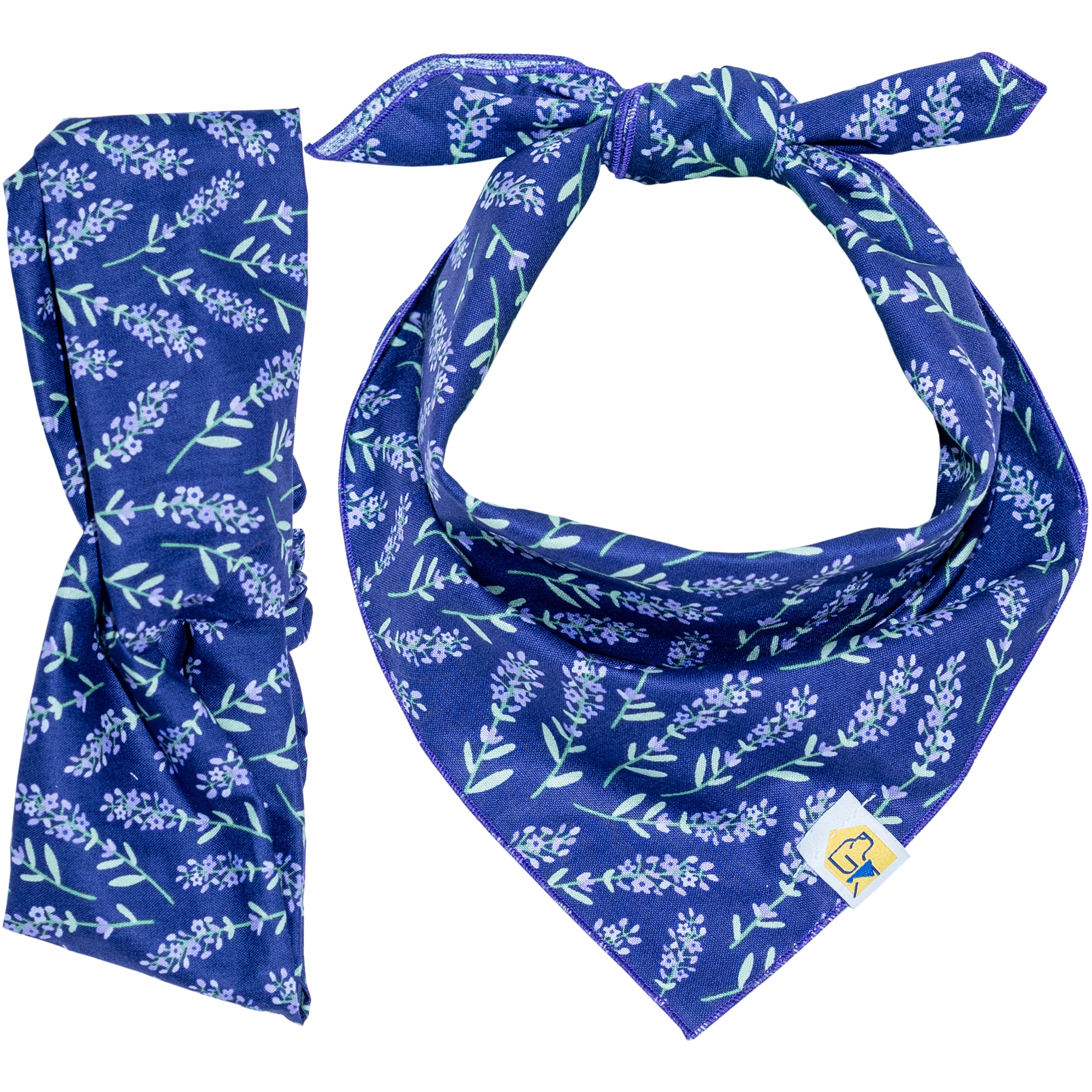 Match your pup in this lovely purple lavender set. Made with a fabric that includes a deep purple base and is sprinkled with lavender blossoms throughout, this richly colored set will add to any springtime outfit.